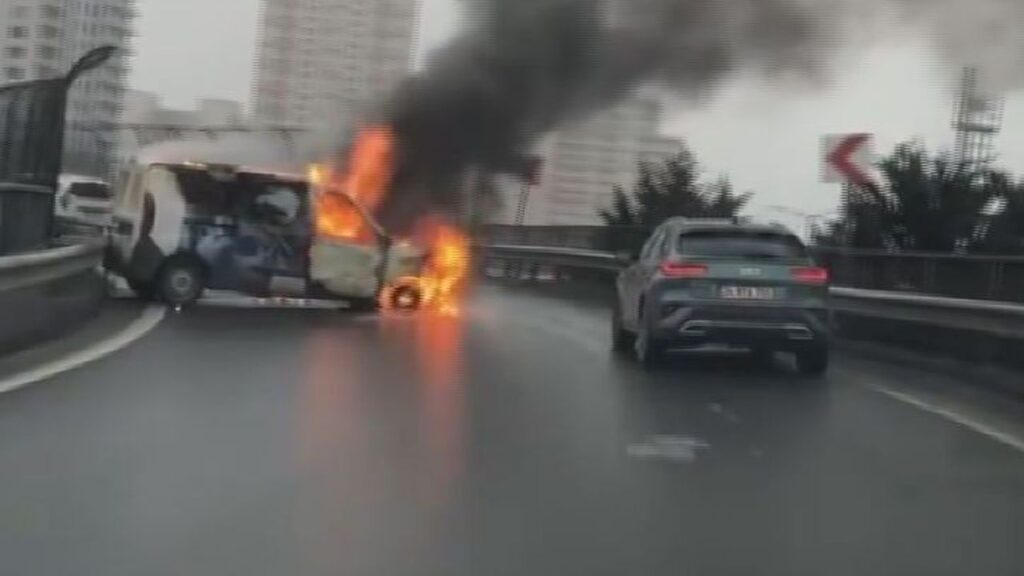 İstanbul Sarıyer’de, park halindeki bir servis aracında yangın çıktı. Elektrikli araç şarj istasyonuna da sıçrayan yangın söndürülürken, küle dönen araç