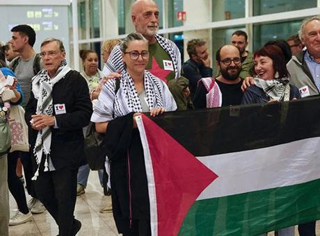 İsrail’in, Gazze’ye doğru yaklaşan Küresel Sumud Filosu’na saldırısıyla birlikte yasa dışı alıkoyduğu filo üyelerinden, 21’i İspanyol olmak üzere 29 kişilik bir grup Madrid’e geldi.